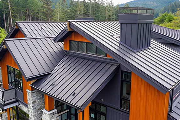 Metal roofing is gaining popularity for its sleek appearance and extreme durability. Whether you’re looking for standing seam panels, steel shingles, or custom metal features, our installations are energy-efficient, fire-resistant, and built to last up to 50+ years with minimal maintenance.